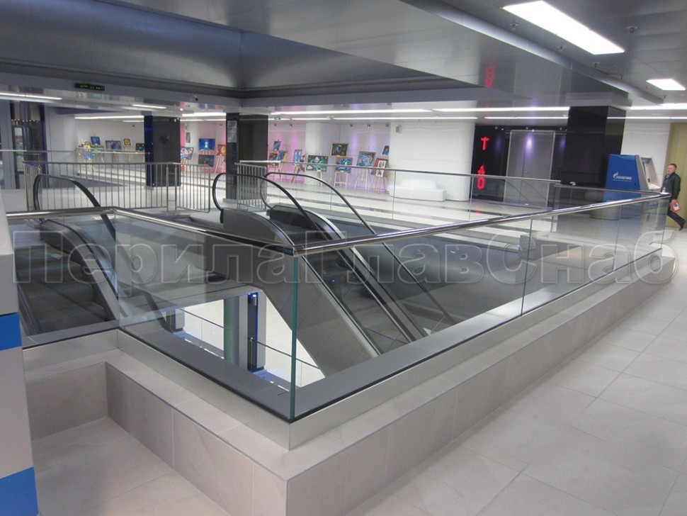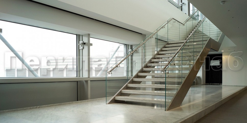 Ограждение с поручнем на выносе на точечном креплении на лестнице