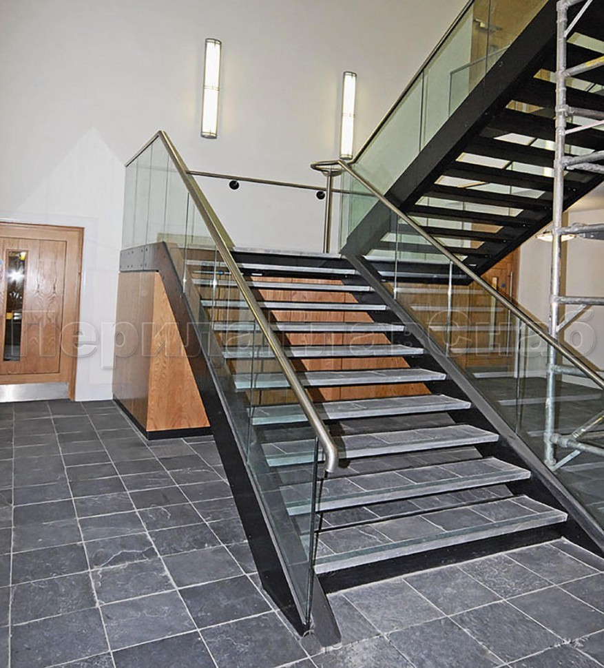 Ограждение с поручнем с пазом в зажимном профиле на лестнице