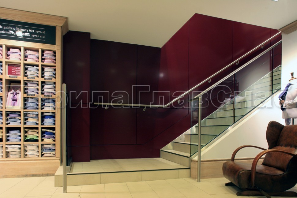 Ограждение с профильным поручнем с пазом в зажимном профиле на лестнице