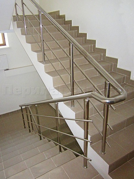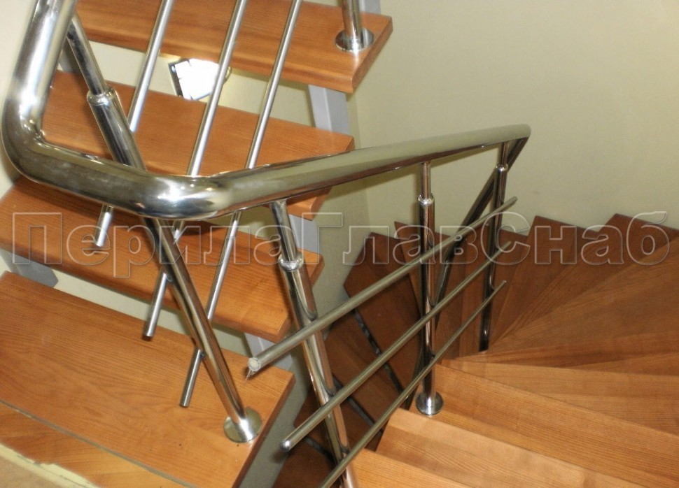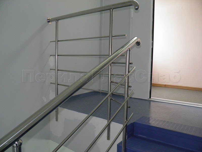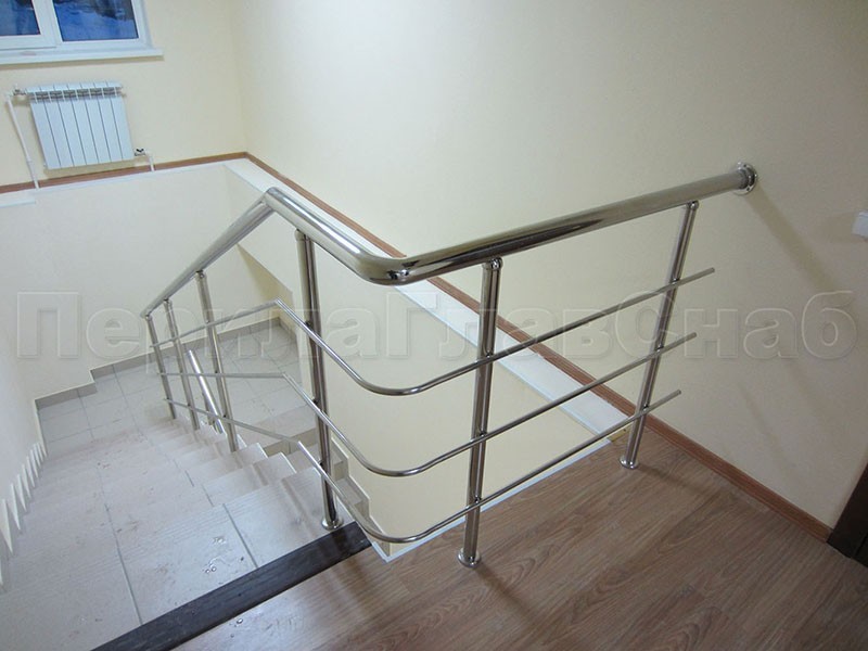 Четыре ригеля на сварке, круглый поручень и квадратные стойки