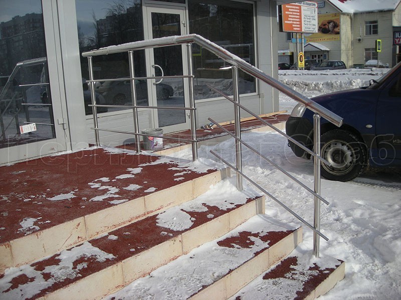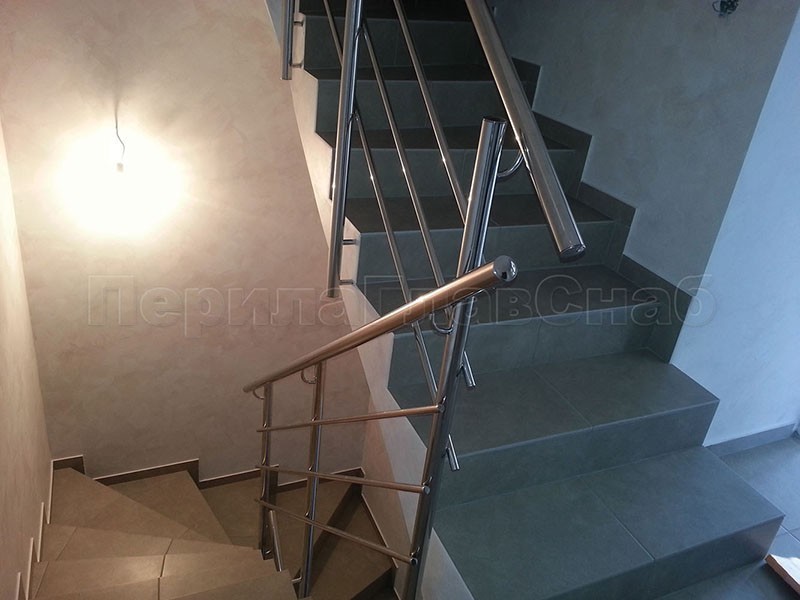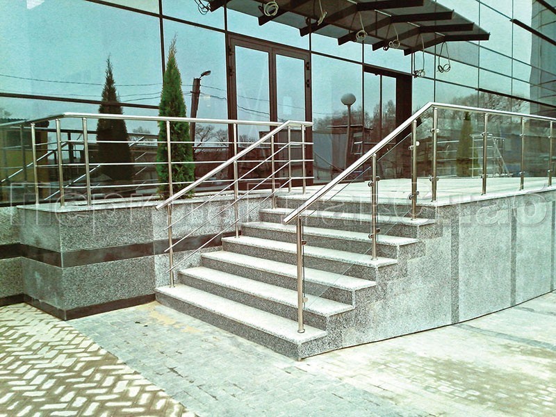 Четыре ригеля на сварке, круглый поручень и круглые стойки для крыльца