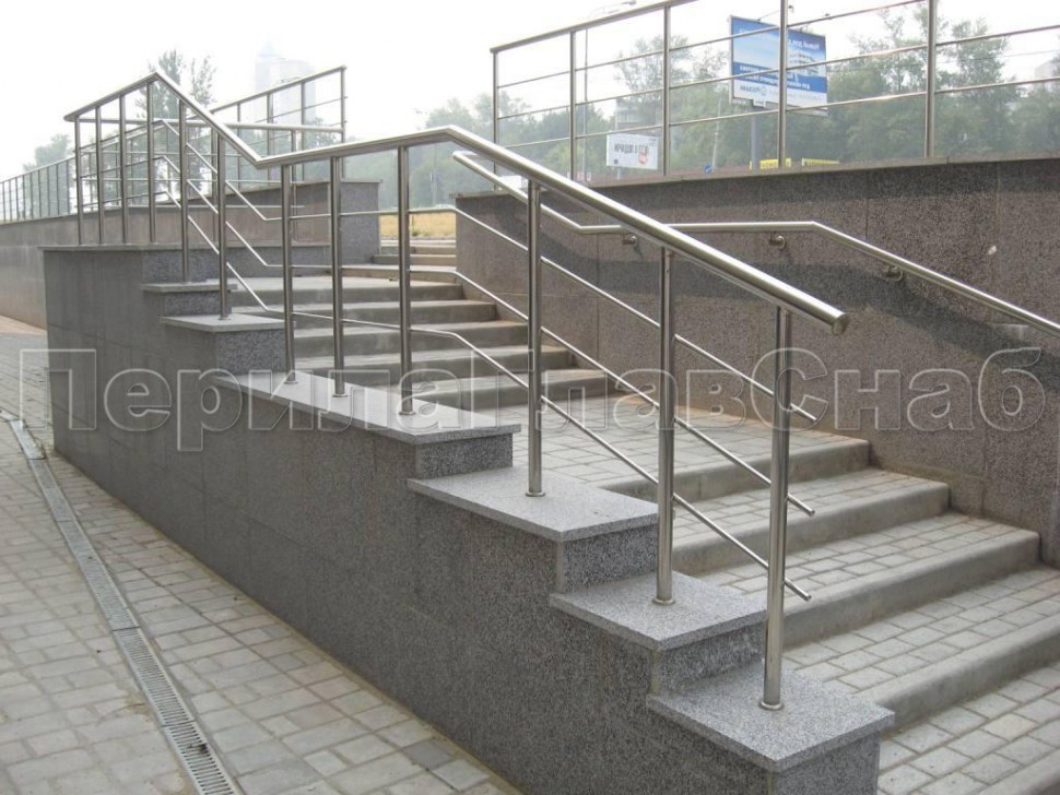 Ограждения с двумя стойками в каждую ступень с пластиковым поручнем и без ригелей