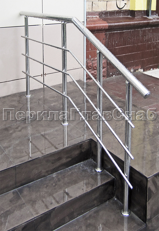 Три ригеля на сварке, круглый поручень и круглые стойки для крыльца