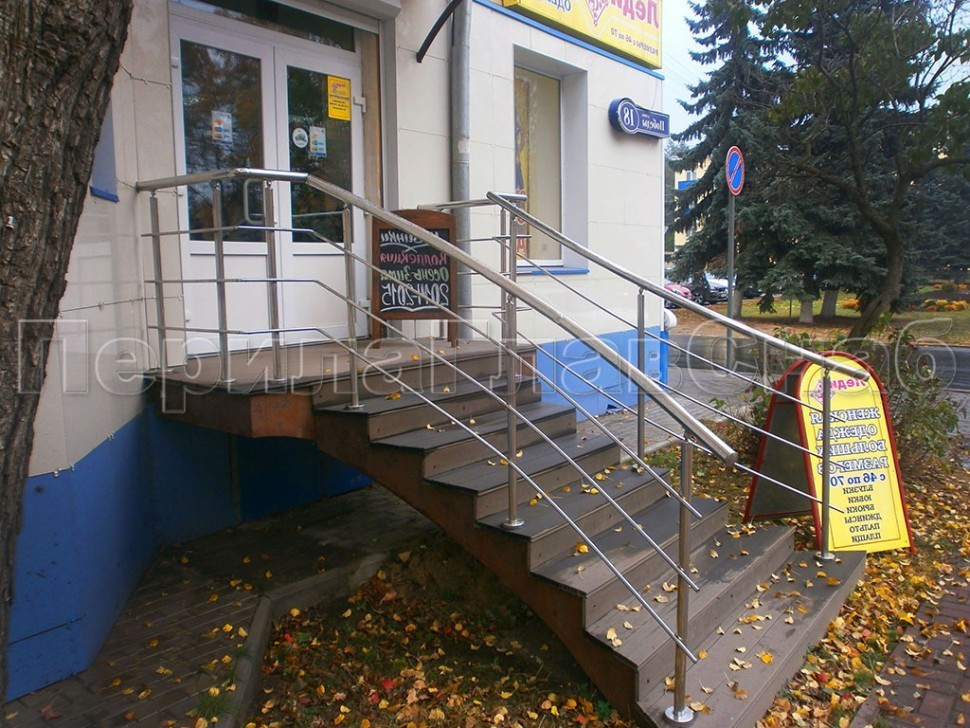 Нержавеющие ограждения для школ и детских садов с вертикальным заполнением “Частокол” - вариант №1 для крыльца