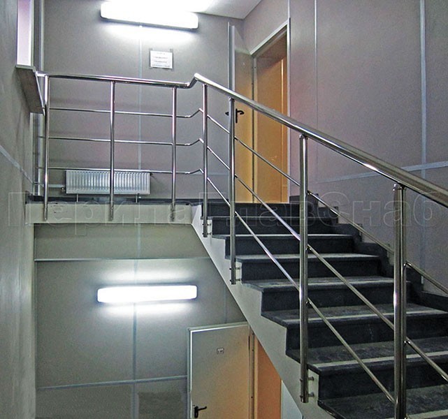 Четыре ригеля на сварке, квадратный поручень и круглые стойки