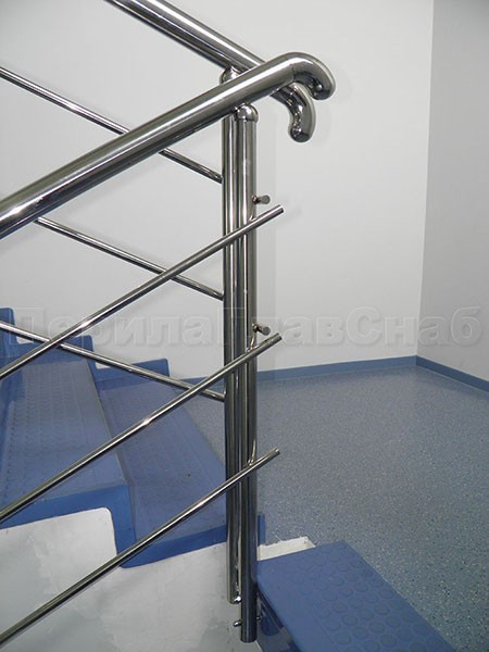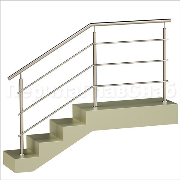 Четыре ригеля на держателях, круглый поручень и квадратные стойки