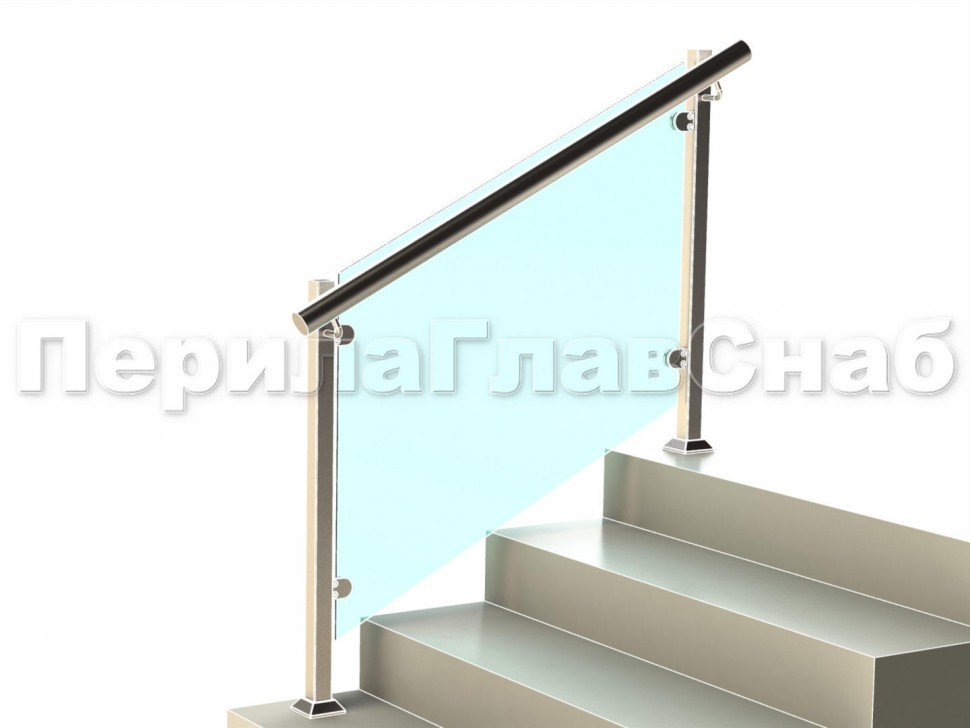 Ограждения для лестницы с поручнем на выносе с зажимными стеклодержателями и квадратными стойками