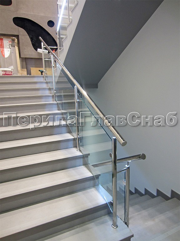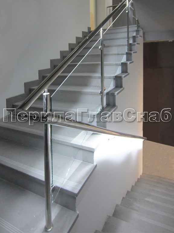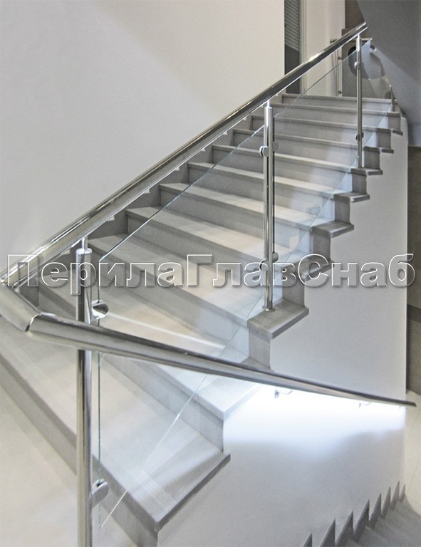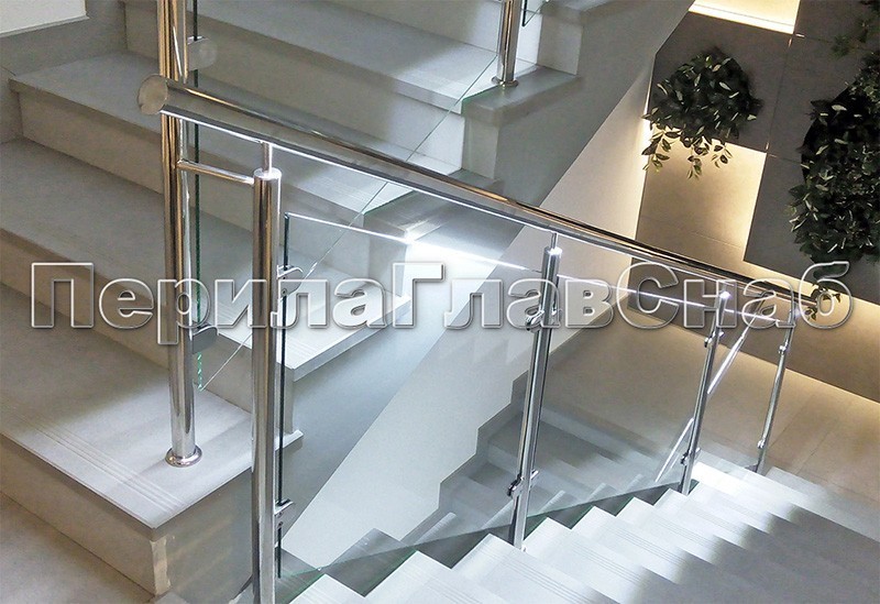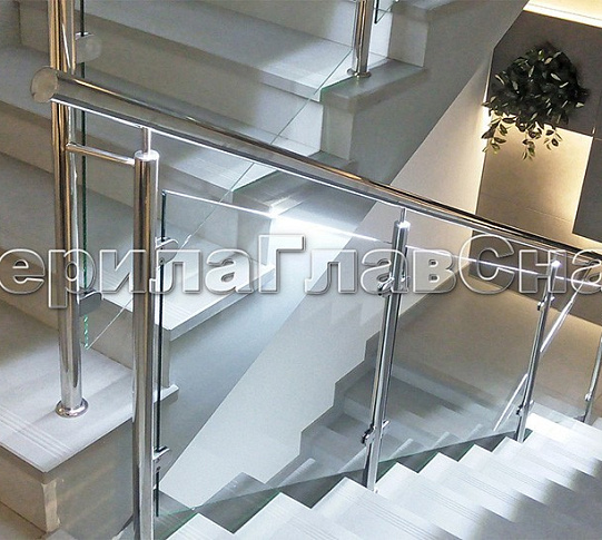 Ограждение для лестницы из нержавейки с зажимными стеклодержателями для крыльца
