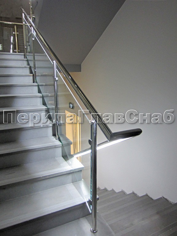 • Поручень труба Ф 42,4мм с пазом и встроенной LED лентой, прерывается на поворотах, окончание поручня заглушка
