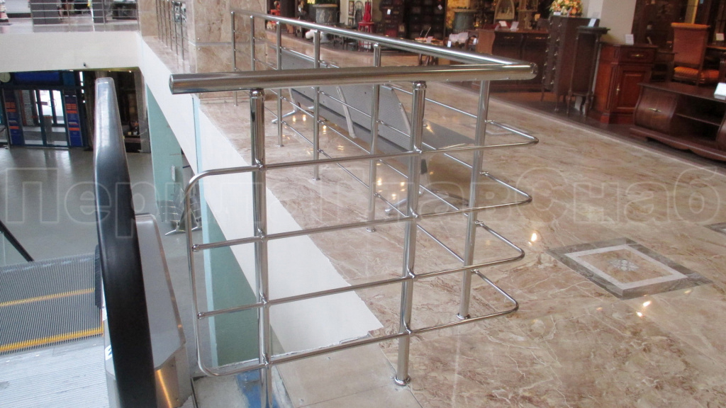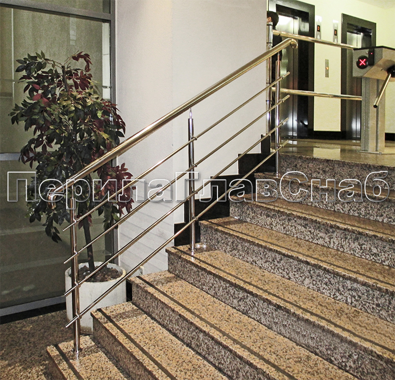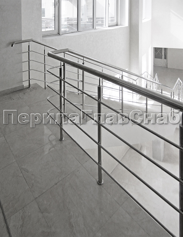 Четыре ригеля на держателях, квадратный поручень и круглые стойки в Новосибирске. Готовые проекты ПерилаГлавСнаб