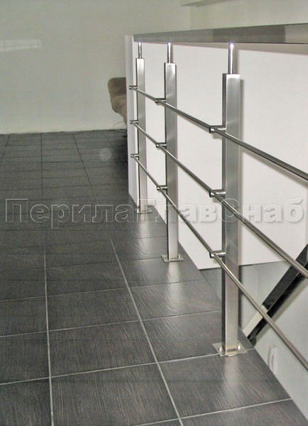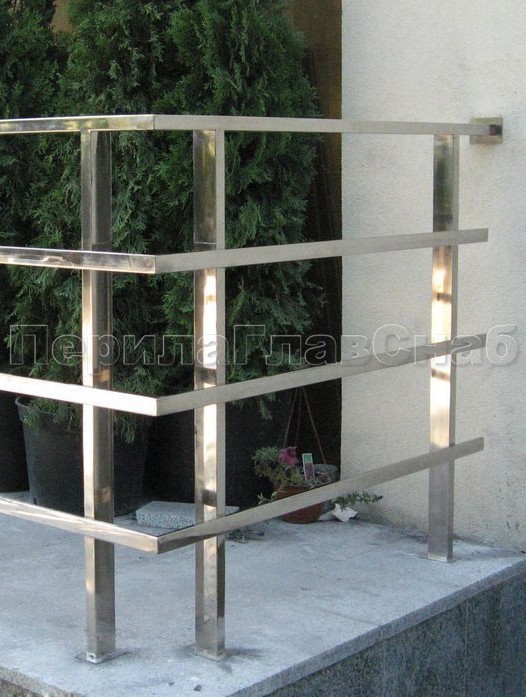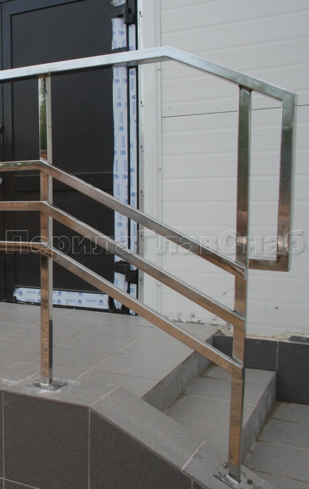 Записаться на встречу Три ригеля на держателях, квадратный поручень и круглые стойки