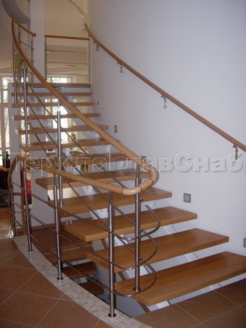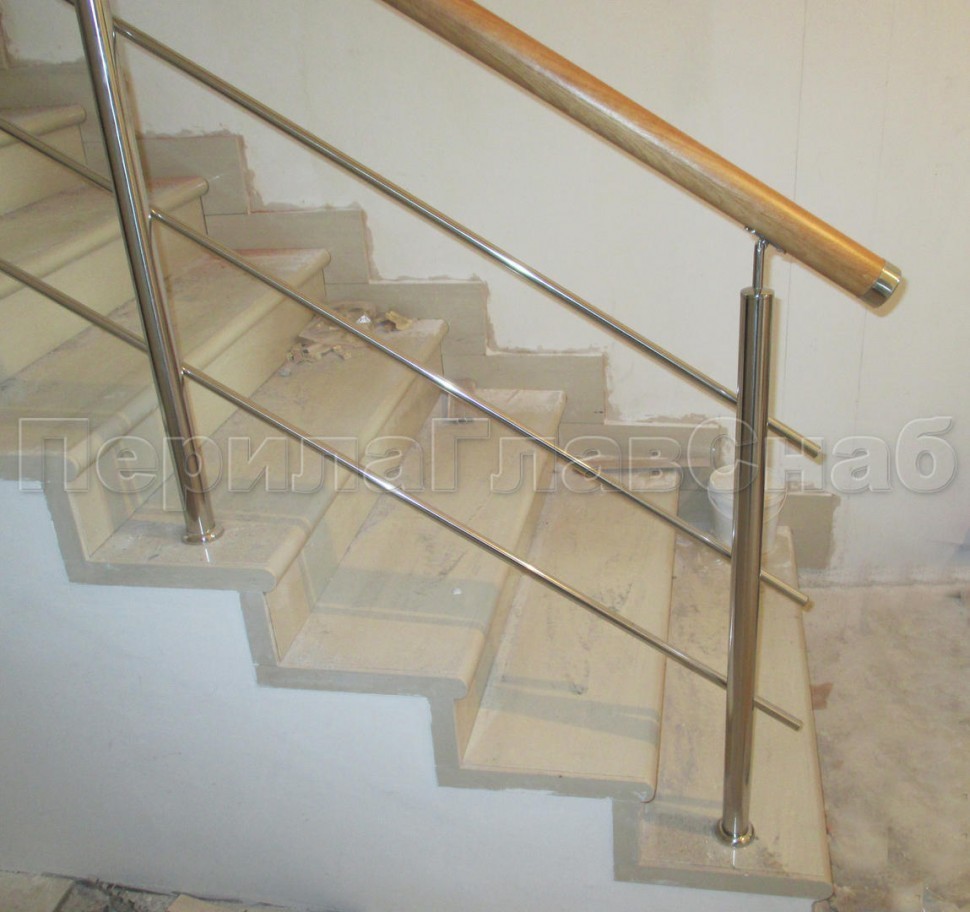 Записаться на встречу Три ригеля на сварке, круглый деревянный поручень и круглые стойки