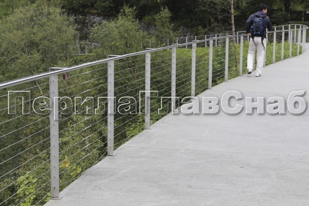 Ограждения из нержавейки. Заполнение из 7ми тросиков + декоративные наконечники