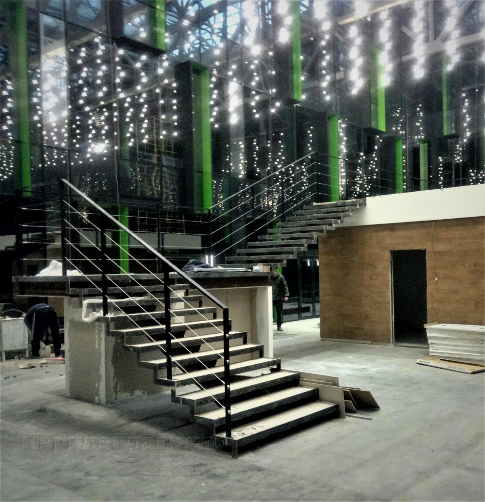 Ограждение лестницы с двумя ригелями