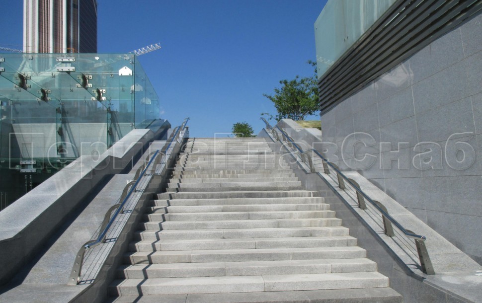Ограждения с двумя стойками в каждую ступень с пластиковым поручнем и без ригелей