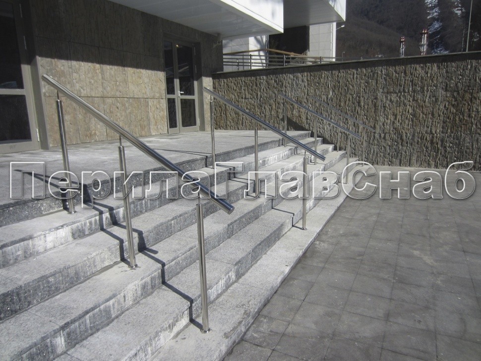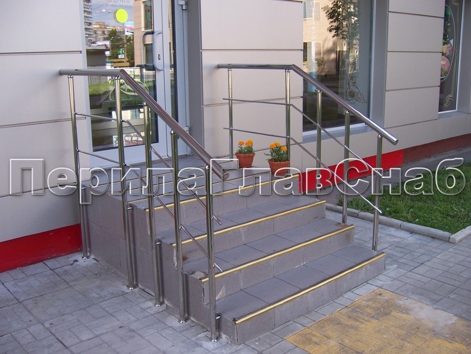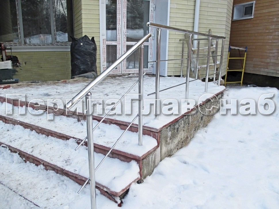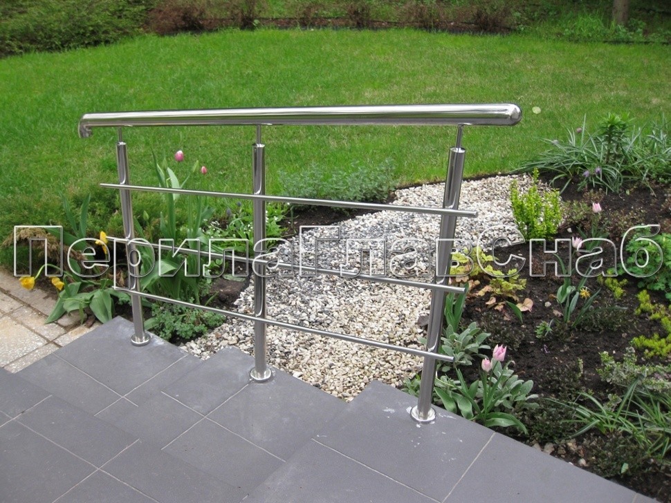 Три ригеля на сварке, круглый поручень и круглые стойки для крыльца