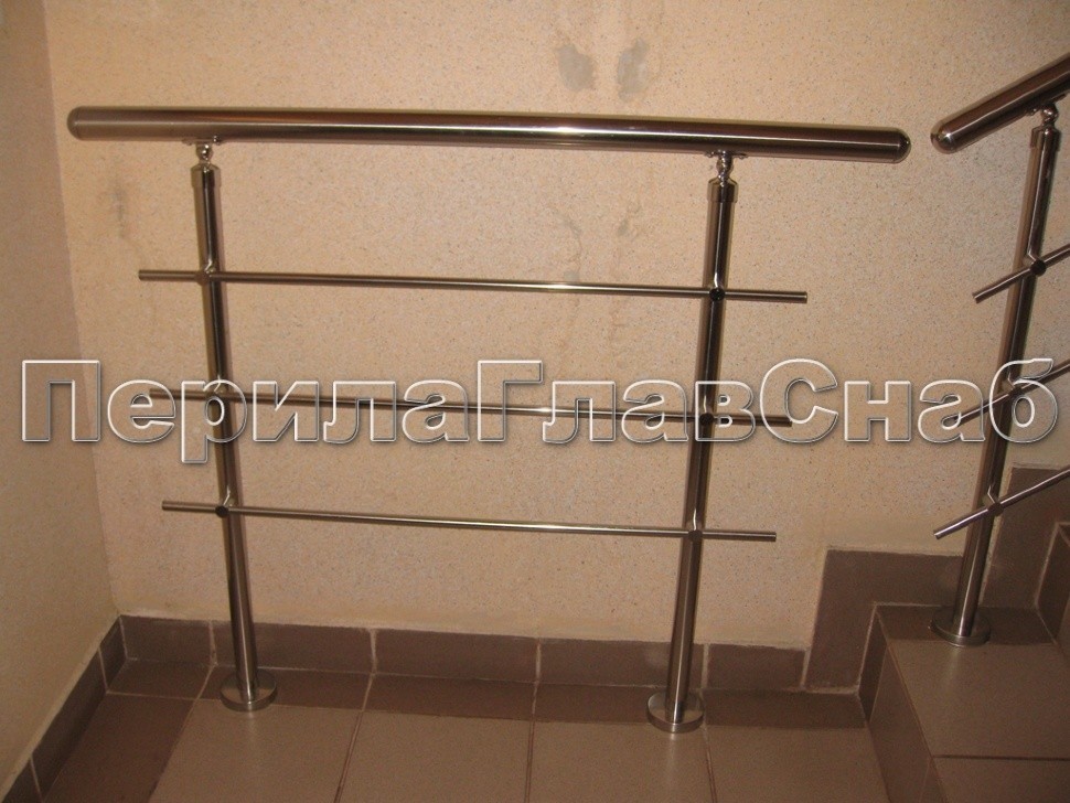 Два ригеля на сварке, круглый поручень и круглые стойки