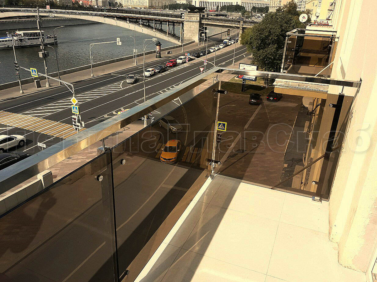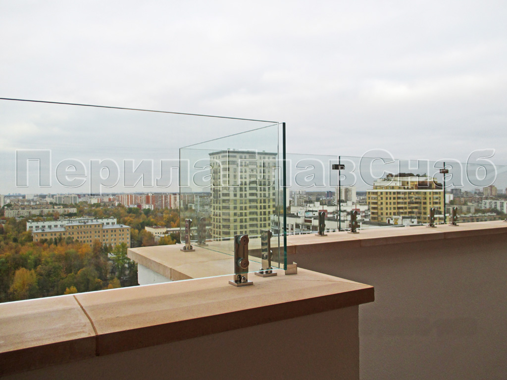 Стеклянные ограждения балкона смотрятся очень современно. Их устанавливают на эксплуатируемую кровлю. Например, если на крыше здания открыто летнее кафе или смотровая площадка, то перила со стеклом будут как нельзя кстати. Стеклянные ограждения для балконов могут быть полностью прозрачными, чтобы не закрывать панорамный вид с крыши. Из соображений безопасности мы используем особо прочное стекло толщиной не менее 16 мм.