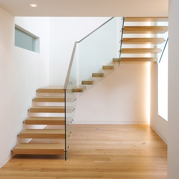 Примеры удачных решений стеклянных перил для маршевых лестниц