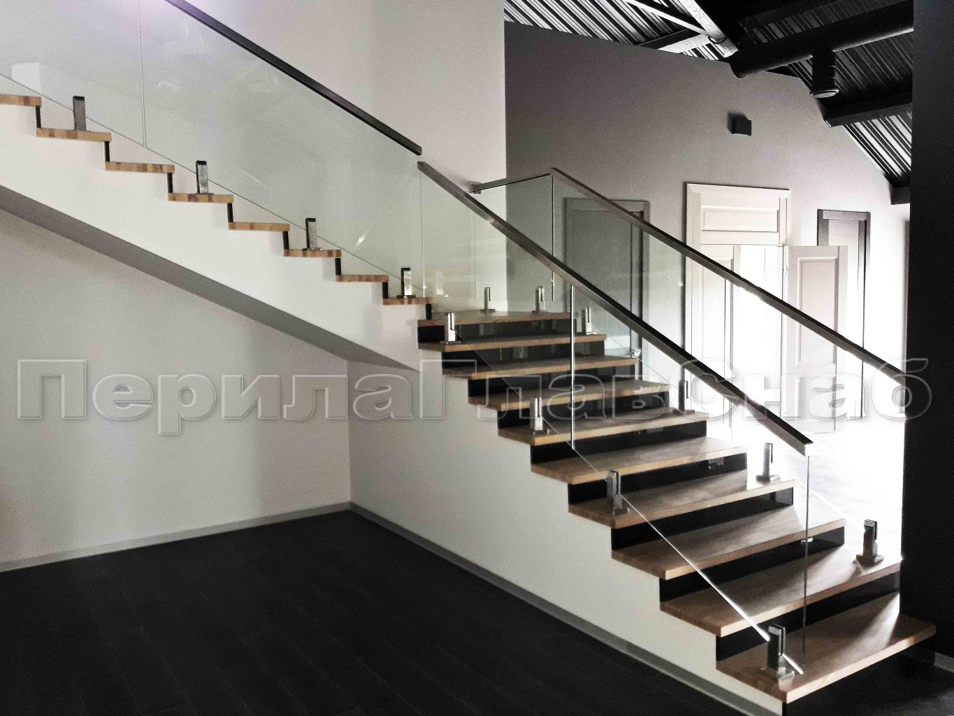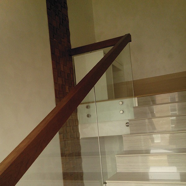 Стеклянные ограждения маршевых лестниц в интерьере - фото