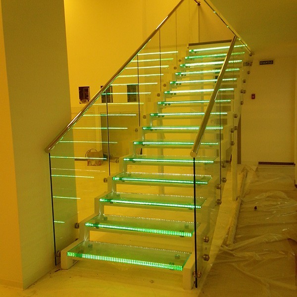 Стеклянные перила для маршевых лестниц с подсветкой