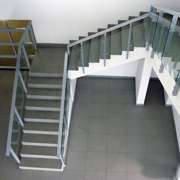 Стеклянные перила для маршевых лестниц в офисном здании.