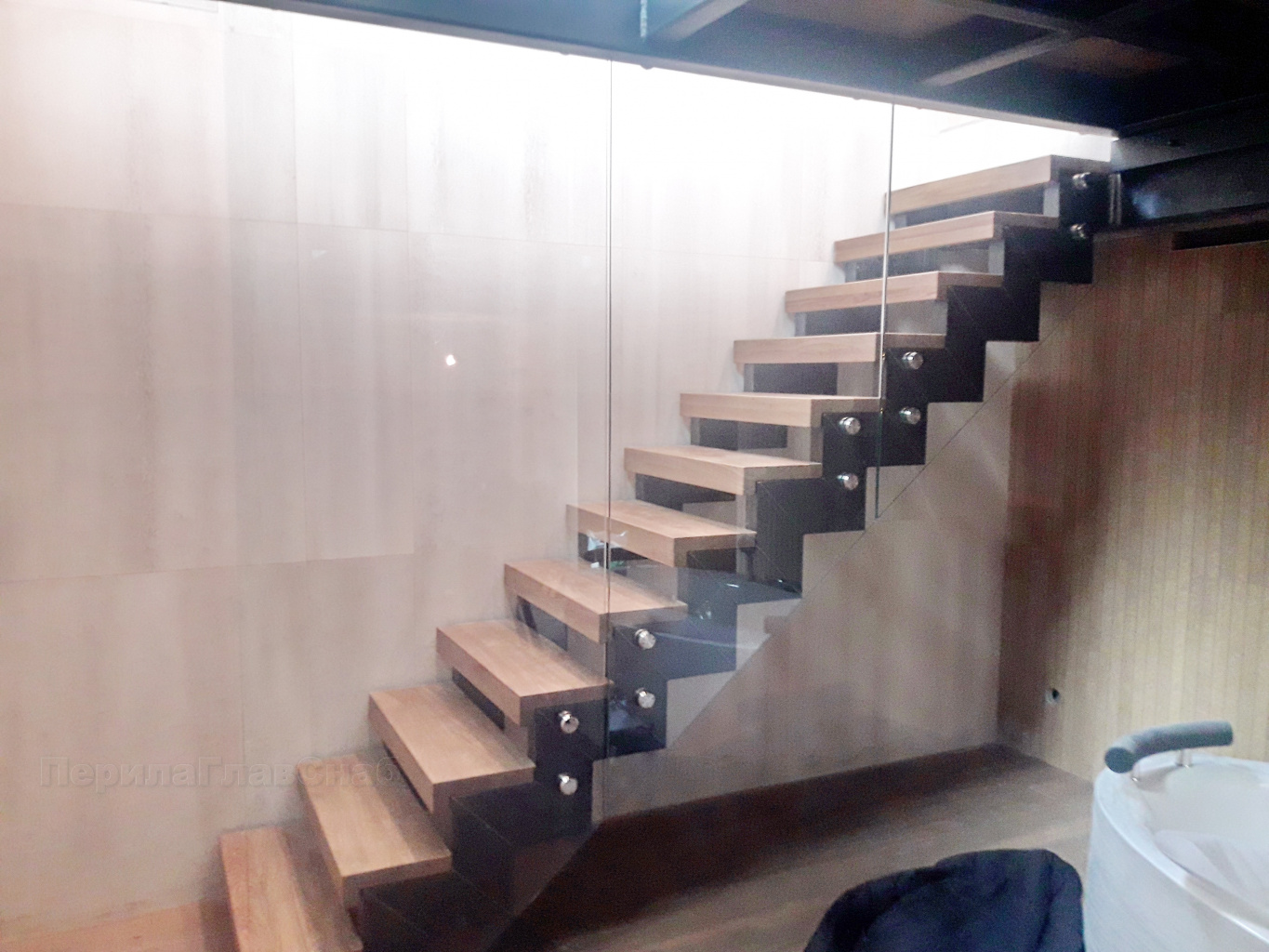Ограждение лестницы с квадратными стойками и пластинчатыми стеклодержателями