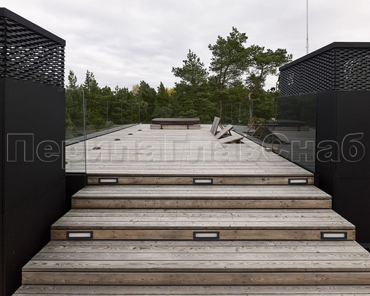 Ограждение лестницы с квадратными стойками и пластинчатыми стеклодержателями