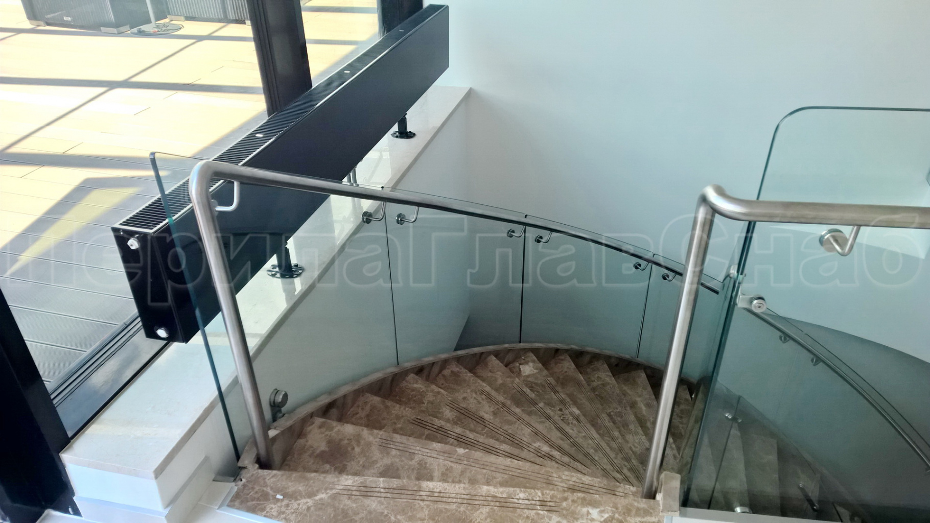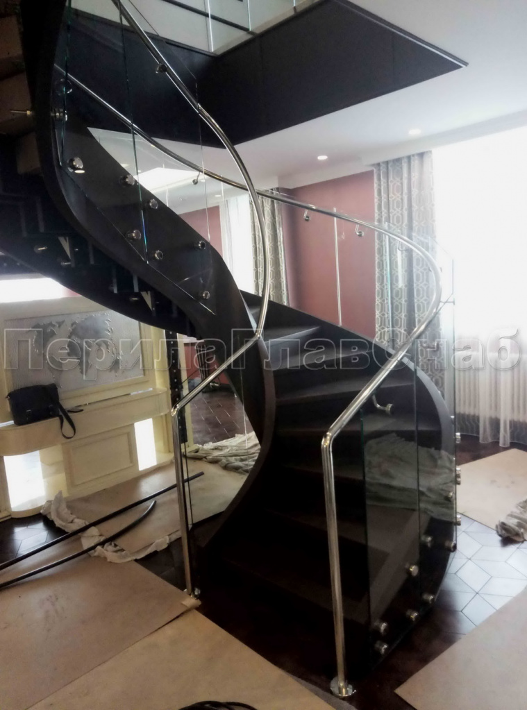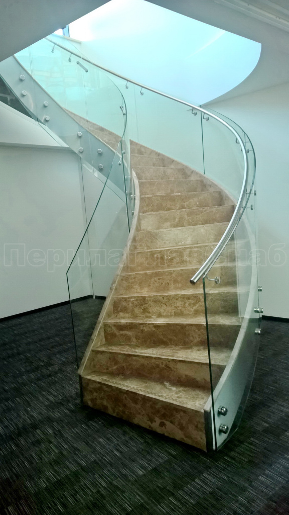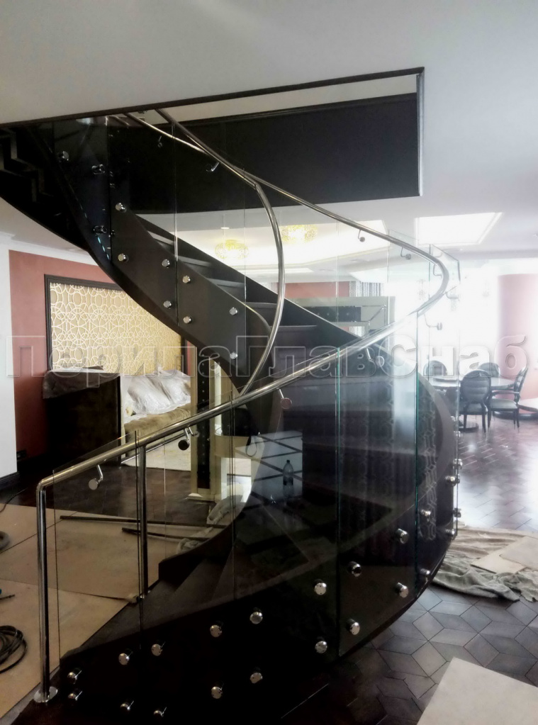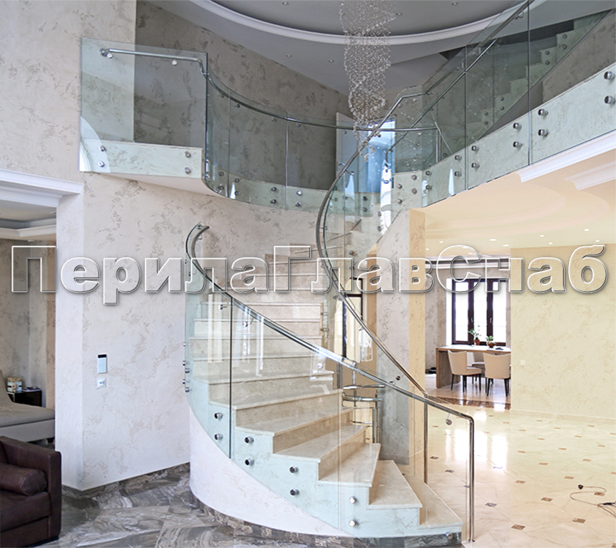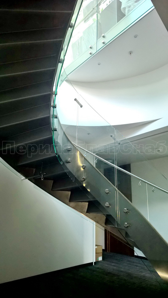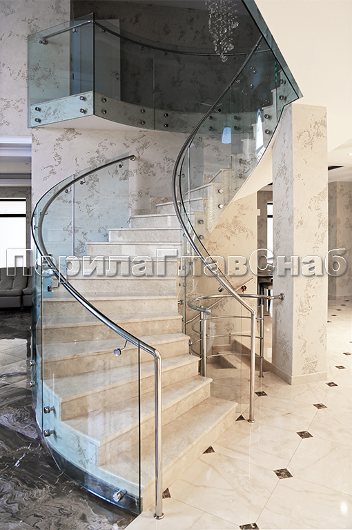Стеклянные ограждения винтовой лестницы и баллюстрады в Новосибирске. Готовые проекты ПерилаГлавСнаб