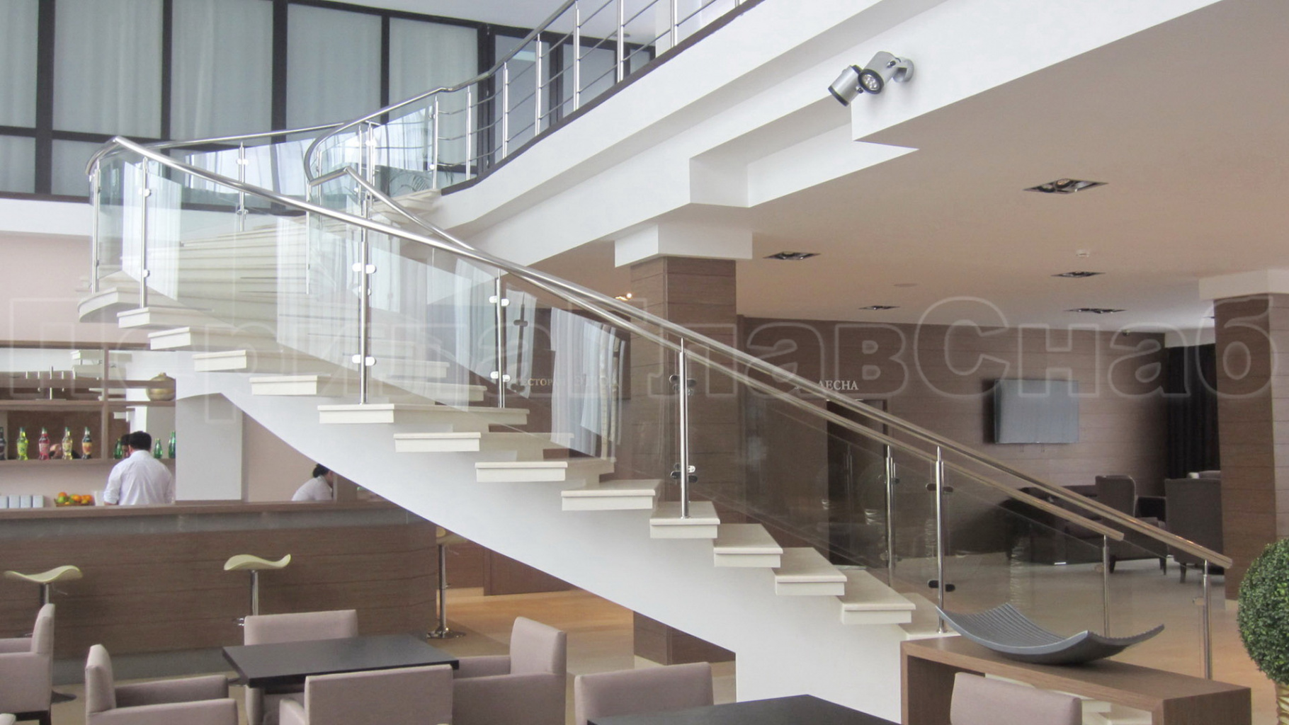 Перила на несущем стекле в ресторане
