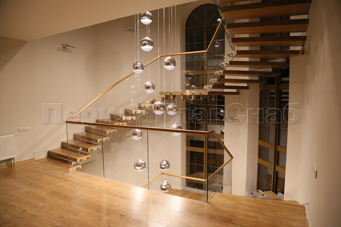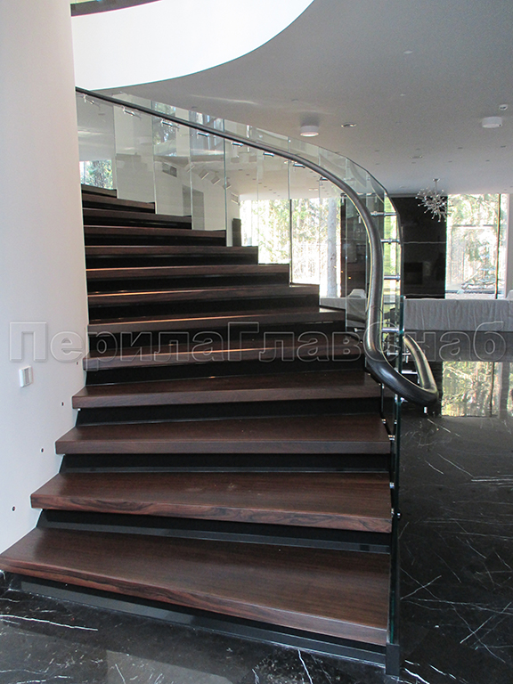 Виды стеклянных ограждений для забежных лестниц:
