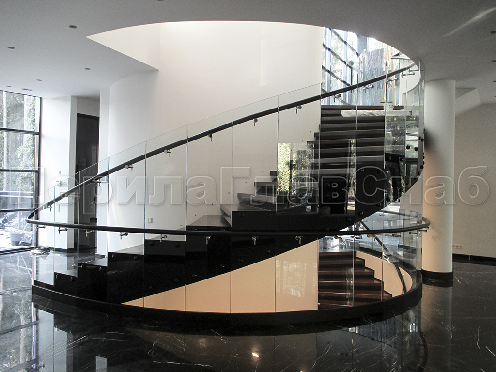 Стеклянные ограждения винтовой лестницы и баллюстрады