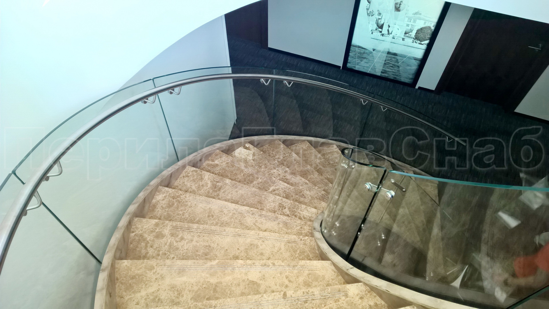 Стеклянные ограждения винтовой лестницы и баллюстрады в Новосибирске. Готовые проекты ПерилаГлавСнаб - фото 1