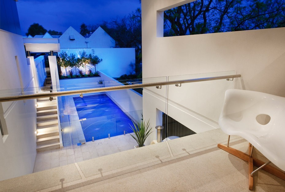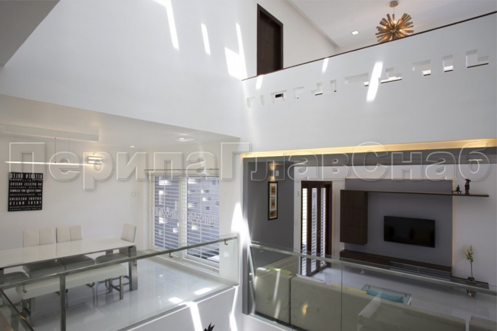 Записаться на встречу Ограждение с поручнем на выносе в зажимном профиле на лестнице