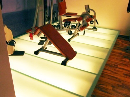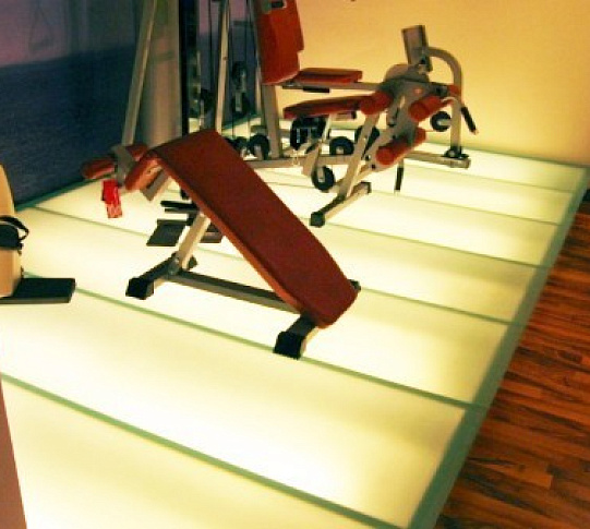 Стеклянное перекрытие из матового стекла на внутреннем балконе