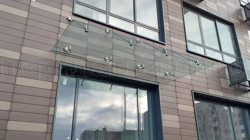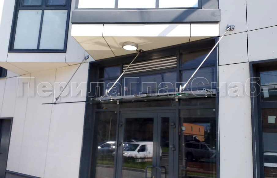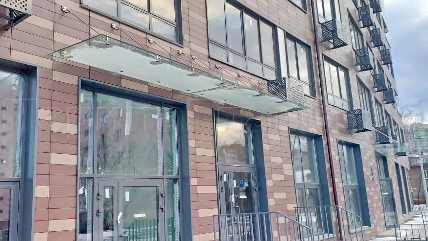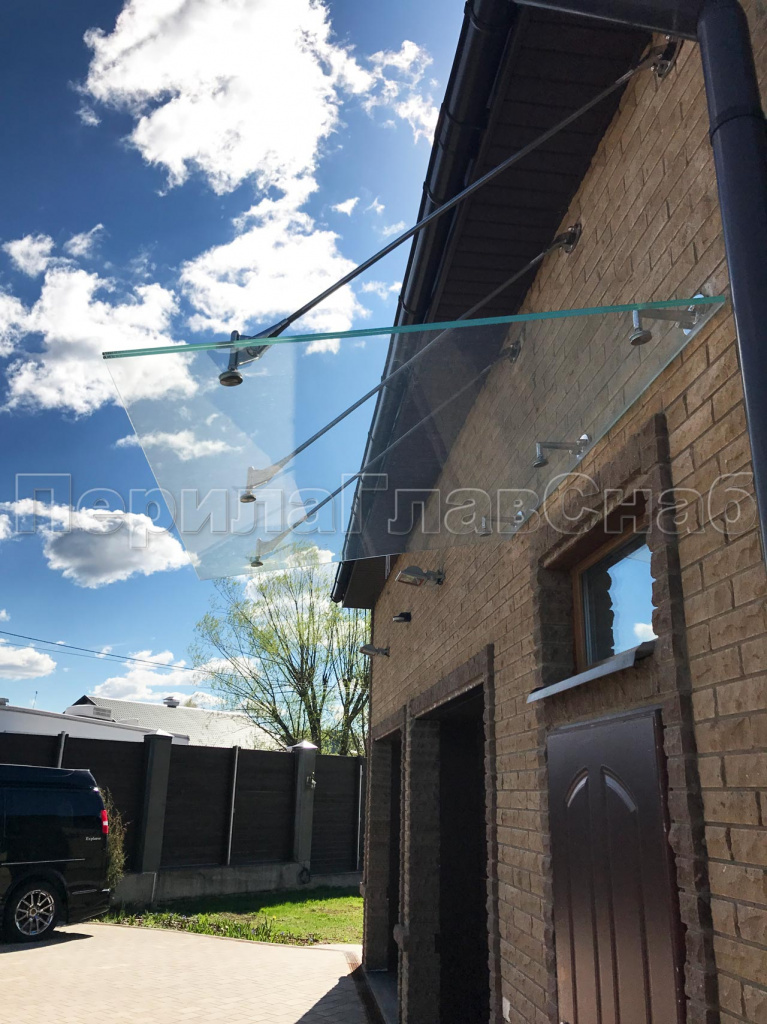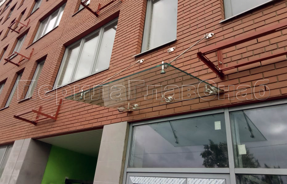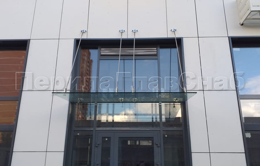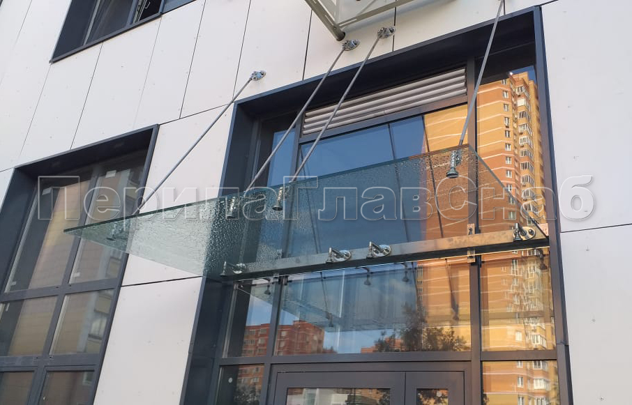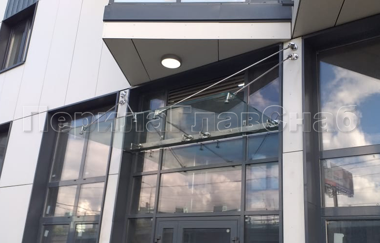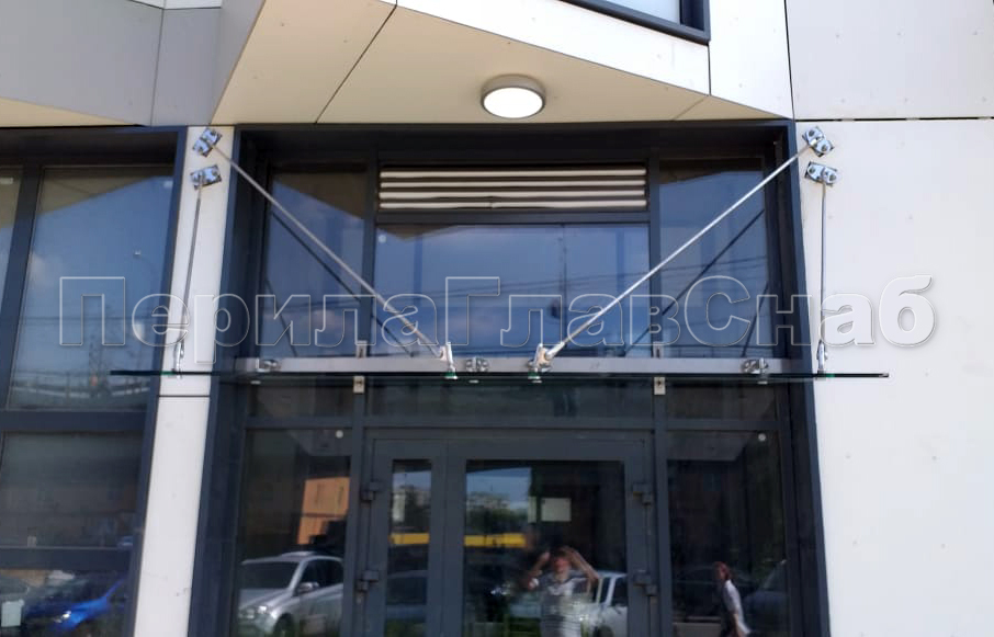 Стеклянный козырек на вантах и профильном каркасе