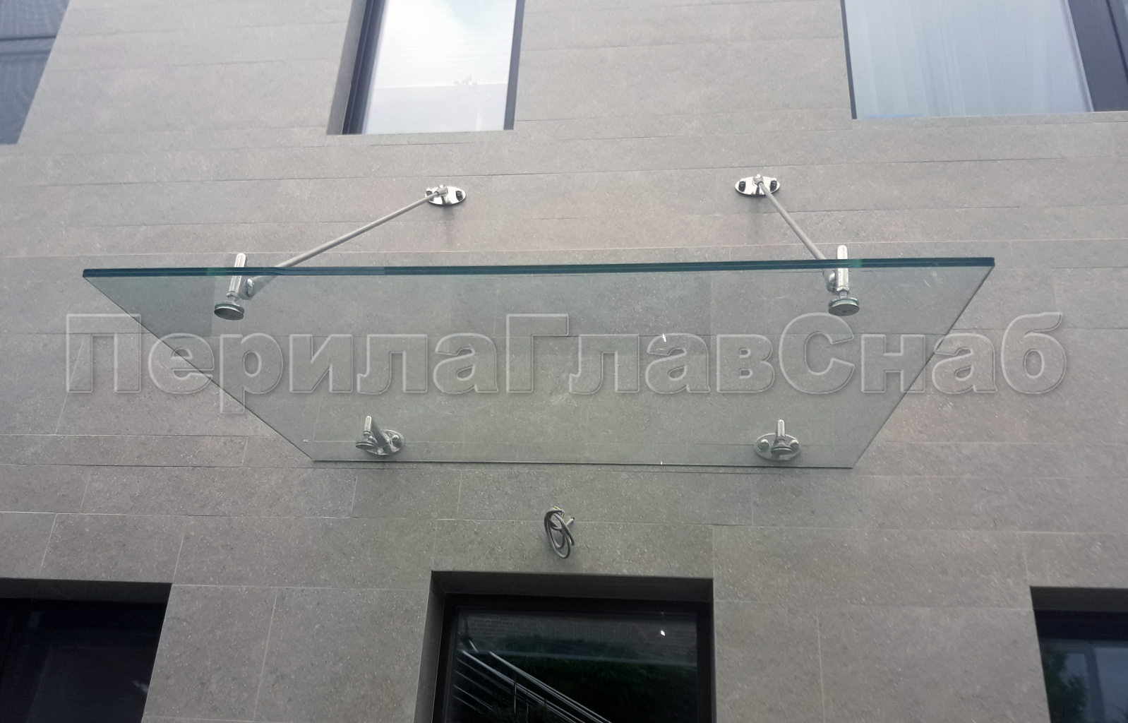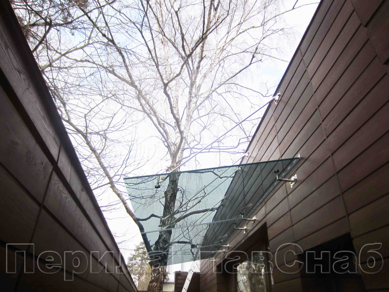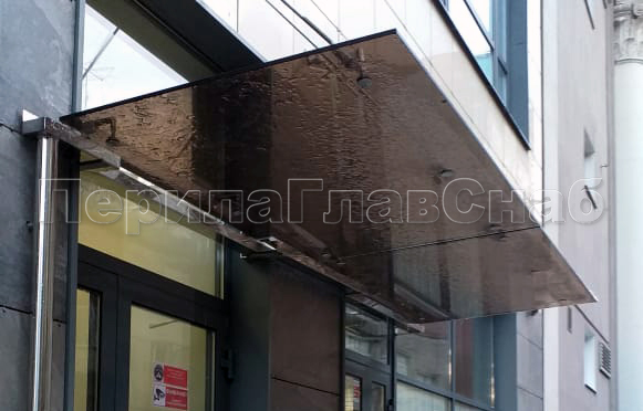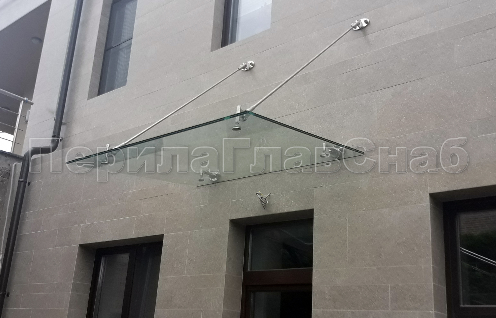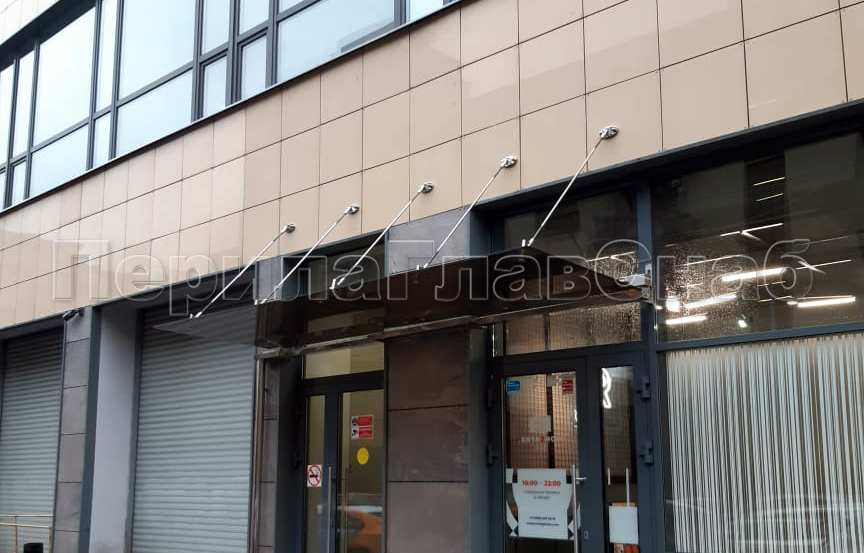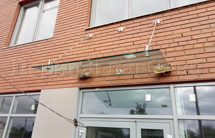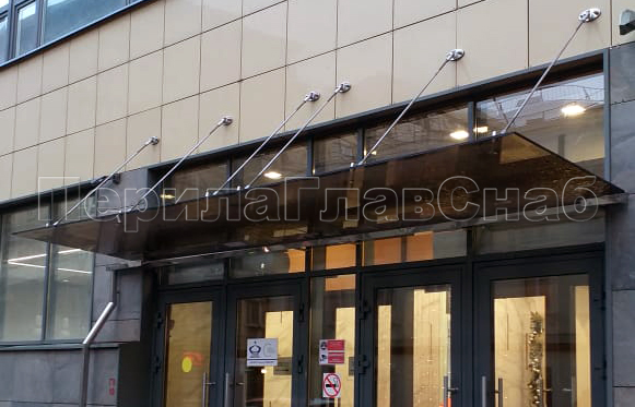 Стеклянный козырек на вантах и профильном каркасе