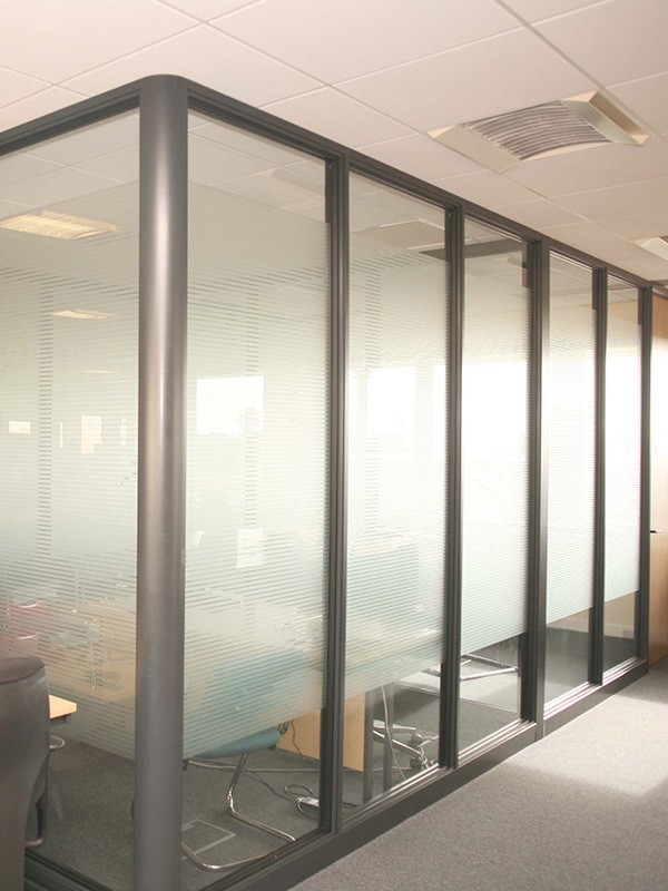 Стеклянные перегородки в офисе с закаткой пленки