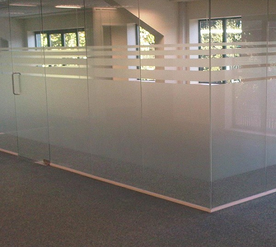 Стеклянные перегородки в офисе с закаткой пленки